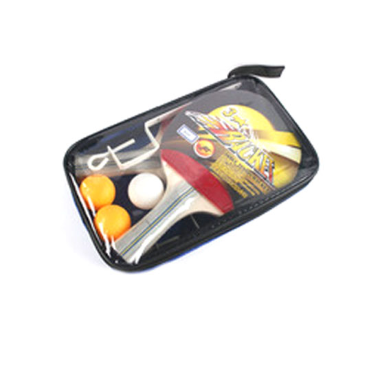 This table tennis set includes a pair of rackets and three balls. Professionally made, the rackets are comfortable to hold. This high quality table tennis set is an ideal game for families and friends.