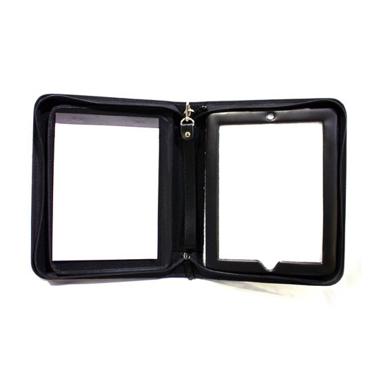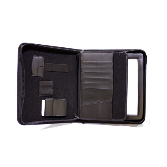 This sophisticated case organizer provides good protection for your tablet computer. Designed in a classic pattern of small oval shapes in black, this case is a stylish companion to your computer. Made with multiple compartments for stationery and business cards, this tablet case organizer makes a helpful computer accessory.