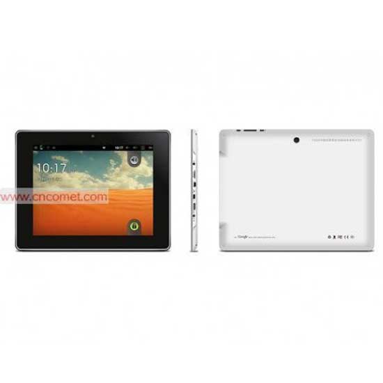 The tablet PC features a 9.7" LCD display screen. It is equipped with a Cortex A8 1.5GHz CPU. This piece also supports 3G and Wi-Fi connectivity.