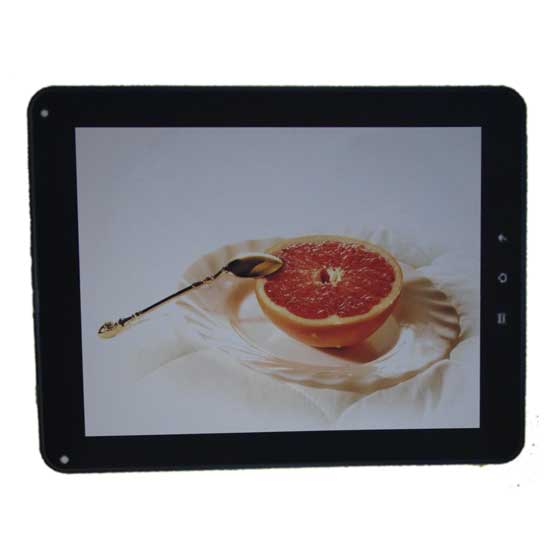 The displayed tablet PC features the ARM Cortex A8 1GHz processor. It comes with a 9.7" RGB 4:3 1,024 x 768 LED screen for crystal-clear image presentation. It runs on the Android 2.3 operating system, featuring Wi-Fi and 3G functions.