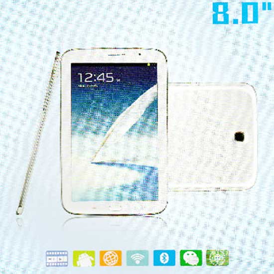 This is an 8" tablet PC that installs an Android 4.1 OS. It is equipped with dual cameras and supports Bluetooth and Wi-Fi connections. This stylish and compact tablet PC is compatible with various apps.