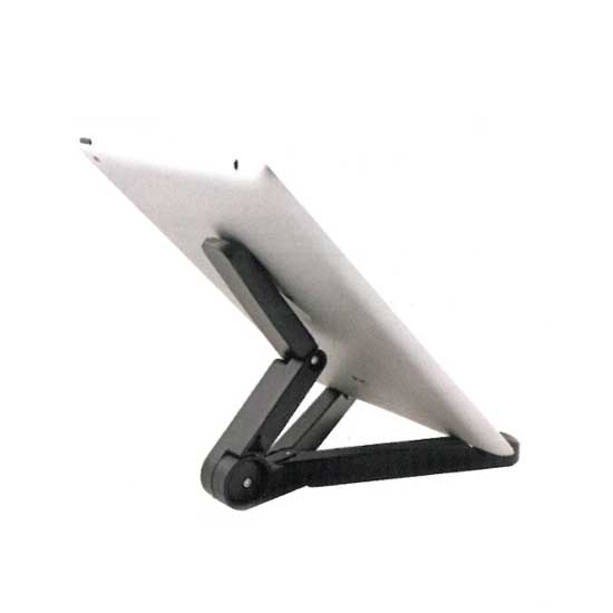 This is a tablet PC stand with a black finish. With this tablet PC stand, you can put your tablet PC on the table at an angle suitable for enjoying videos and games. Constructed in a robust housing, this tablet PC stand will last for years to come.