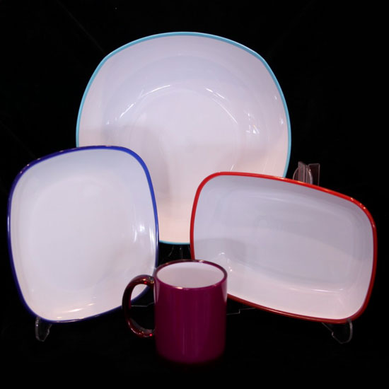 Outlined here is a set of tableware that is well made of PS material. A cup, an oval plate, an oval-square plate and a square plate are included in this set of products. The simple yet practical design makes this tableware set ideal for every household.
