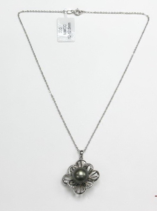 • 12-12.5mm Tahiti pearl with CZ and s/silver rolo chain necklace 16"