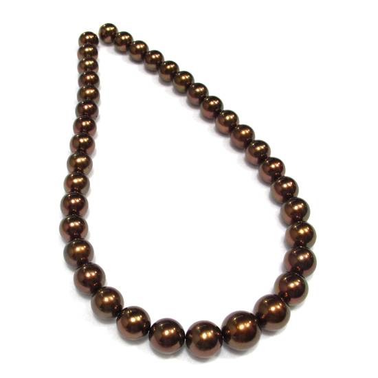 This is a Tahiti pearl necklace threaded with round-shaped pearls in chocolate colour. The graduated necklace shows a simple yet high-fashioned and aristocratic design, which is perfect to be worn to any special occassions such as evening parties.