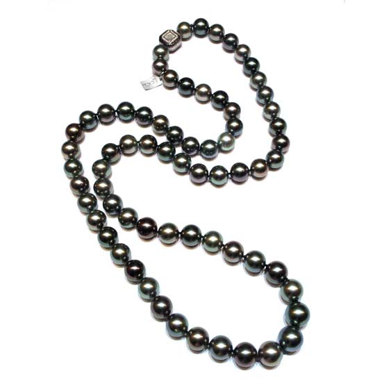 The Tahiti pearl necklace is delicately made with exquisite craftsmanship. The necklace features a classic strand of Tahiti pearls in a black color, adding a sense of mysterious yet elegant glamor. This Tahiti pearl necklace will add a fresh look to your grand ensemble.