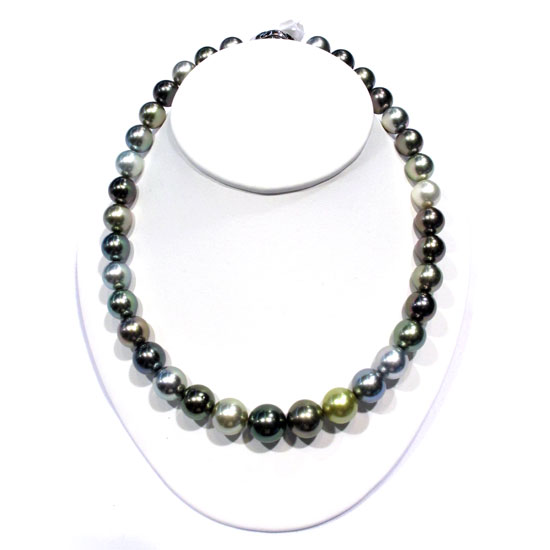 This presented pearl necklace is arranged with quality Tahiti pearl in multiple colors. The round Tahitian pearls are masterfully polished, reflecting an attractive shine. This dainty Tahitian pearl necklace complements your look nicely.
