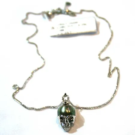 Look cool with the featured necklace. It comes with a skull pendant of which the upper part is made of a Tahiti pearl. The pendant is delicately made. The design of the necklace is rare among precious jewelry items.
