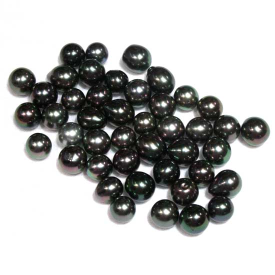 The Tahitian pearls boast consistent round shape and black color for a sense of balanced beauty. Priced for their high luster, these Tahitian pearls are ravishing pieces of jewelry for ladies of different ages. These valuable black pearls are remarkable for the manufacturing of necklaces, earrings, bracelets, etc.