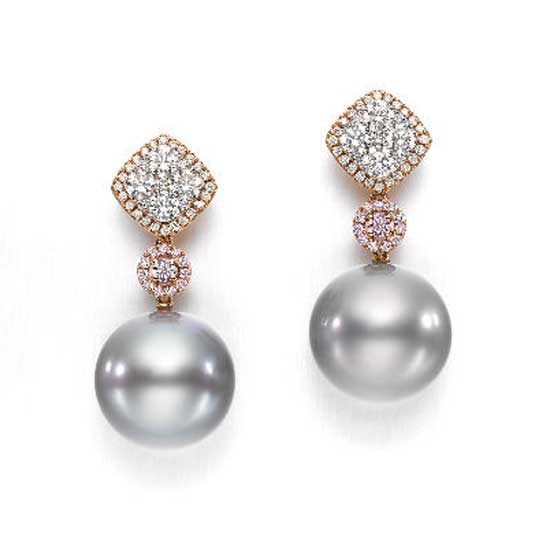 This pair of deluxe earrings comes with a glossy round Tahitian pearl for attractiveness. It is hand crafted with natural pink diamonds on the top to lure in ladies’ hearts. This pair of fancy earrings is an ideal addition to your jewelry collection.