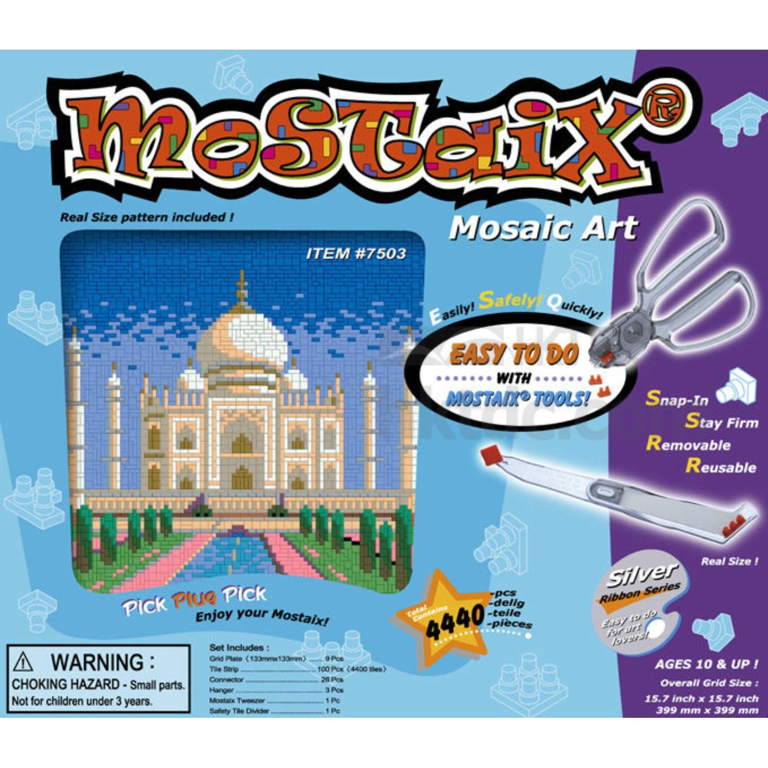 Each kit consists of 4,400 plastic tiles, 9 plastic girds, 36 connectors, 3 hangers, 1 Mostaix tweezer, 1 Mostaix safety tile divider, and a real-size instruction.