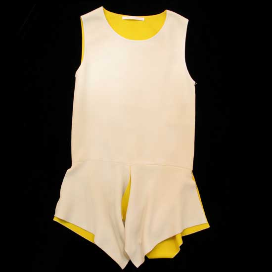 This tank top boasts an energetic design for summer. The top looks sharp and chic in a match of white and yellow colors. The edge features an asymmetrical cut to showcase a cool character.