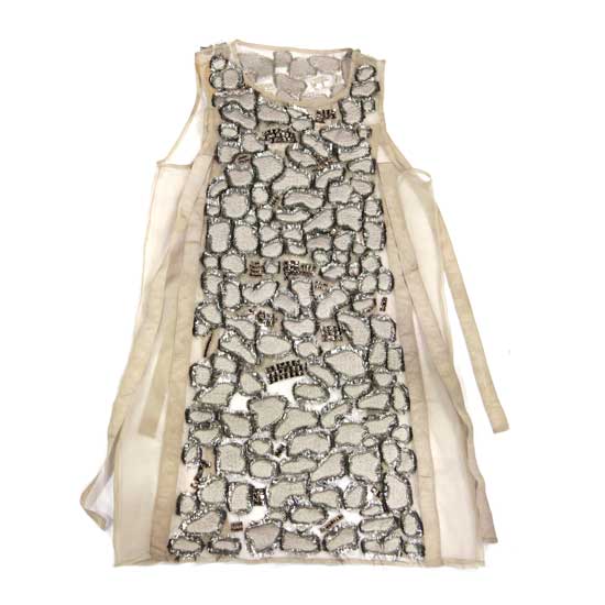 This attention-grabbing tank top features translucent sides, and shiny patterns at the front and back. It is made of organza for coolness and comfort. This fashionable tank top is great for summer days.