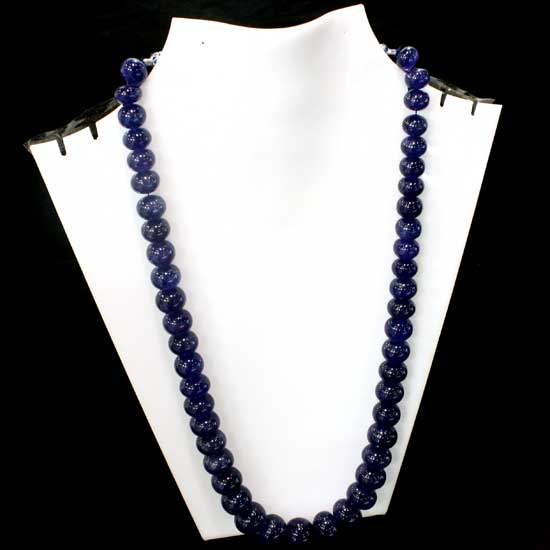 Featured is a beautiful necklace stranded with tanzanite beads originated from Tanzania. Every tanzanite bead is finely cut and polished with a consistent round shape. This enticing necklace makes a graceful addition to your wardrobe.