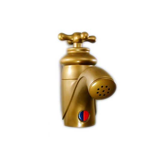 Entertain yourself at home with the featured radio. It features a creative design of a golden water tap. The speaker is located at the outlet, adding extra humor to the design.