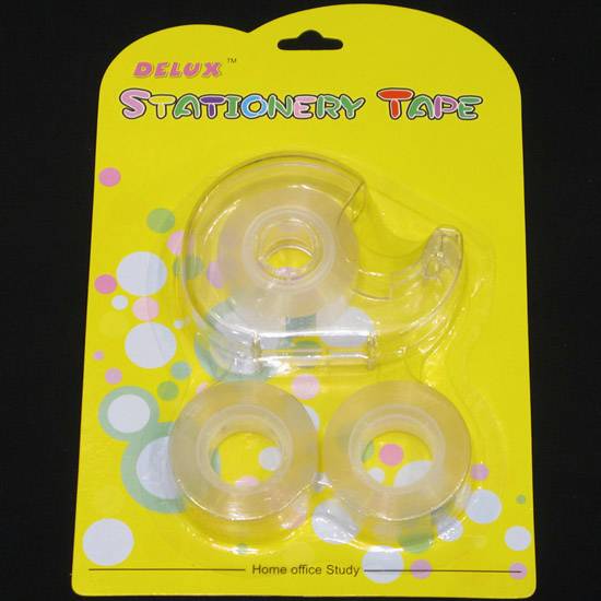 The set comes with a tape dispenser and two plastic adhesive tapes. The tape dispenser allows you to tear a piece of sticky tape off easily and effortlessly. This set is an ideal stationery item for offices, homes and schools.