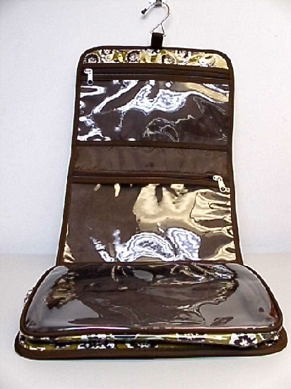 • Inside have one metAl hook hanger, one of clear PVC zippered compartments and two of clear PVC zippered pocket.