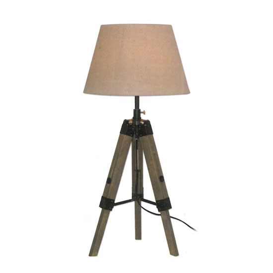 This is a task lamp with a classic and elegant appearance. It comes with a tripod stand in a sophisticated design. The lamp is completed with a cone-shaped lampshade in beige.