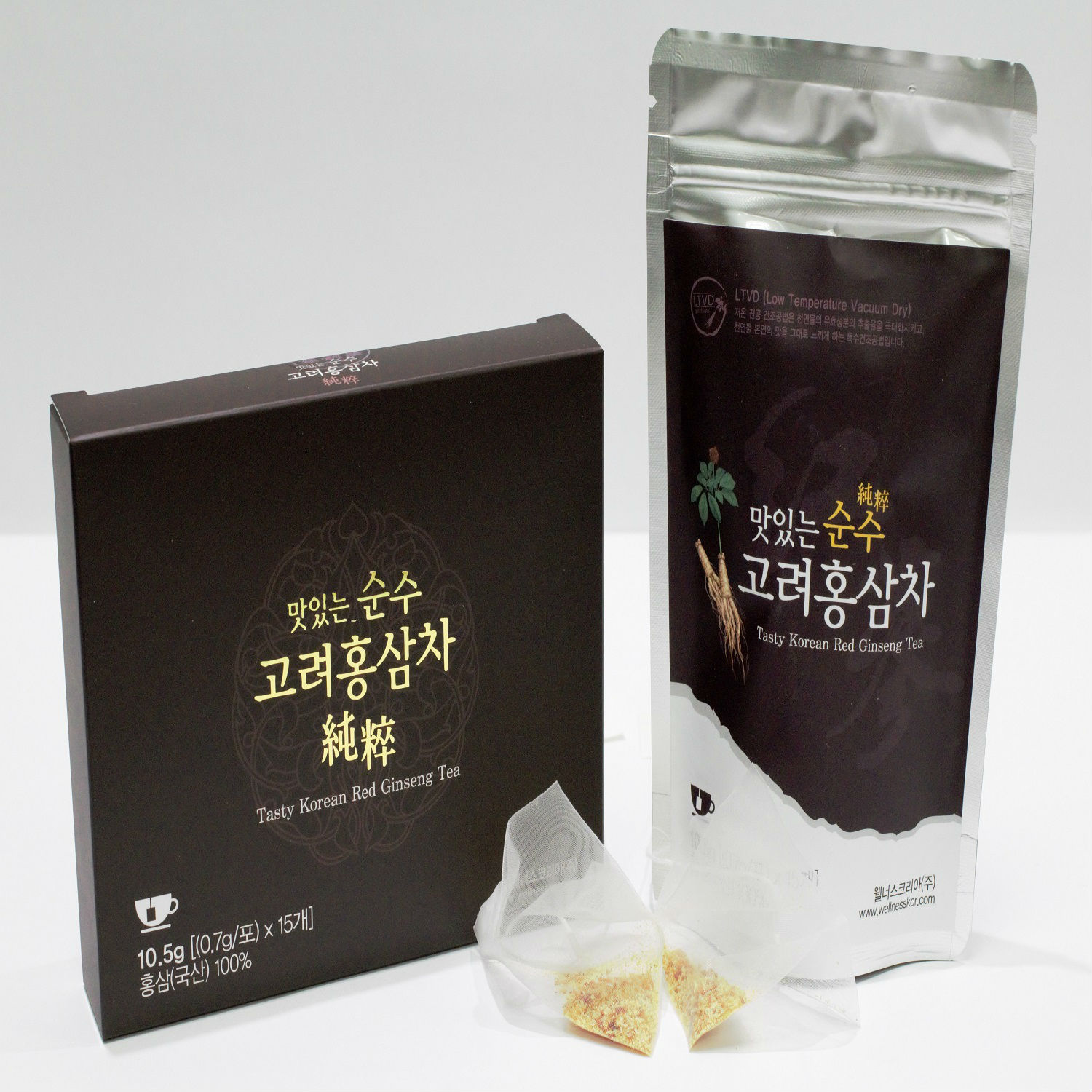 Contents : LTVD Red Ginseng coarse powder How to take Put a teabag into 80mL of hot water and drink after 3 to 5 minutes. Features Additives-free 100% Korean red ginseng coarse powder Being able to intake wholesome ingredients of red ginseng eluted easily in hot water. Being able to feel savory flavor of red ginseng.