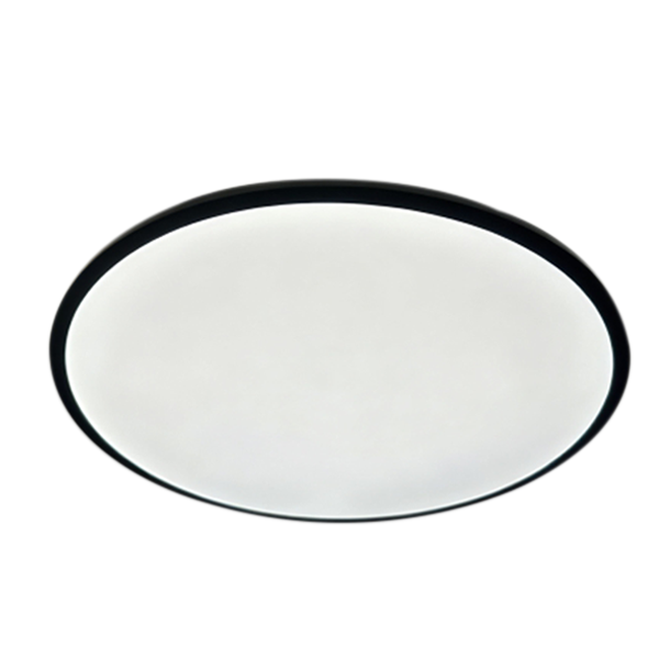 This is a circular ceiling light. The edge of the lamp body is black, with a simple and smooth shape. The central light - emitting area can emit bright and soft light. When lit, a faint halo will also show around the edge. The overall style is simple and grand, full of modern sense. It is suitable for installation in home spaces such as living rooms and bedrooms, and can create a bright and comfortable lighting atmosphere, fitting home decoration styles like modern minimalist.