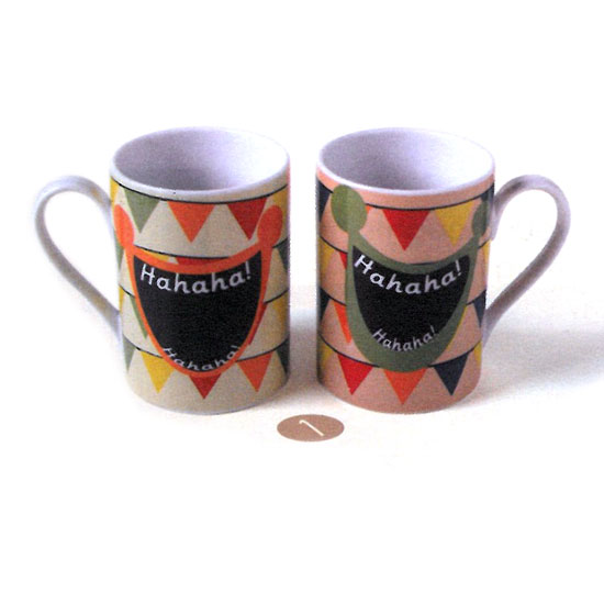 This is a tea mug with an eye-catching appearance. Its exterior is printed with a laugh mouth and colorful flag patterns. This mug is a great choice for home and office use.