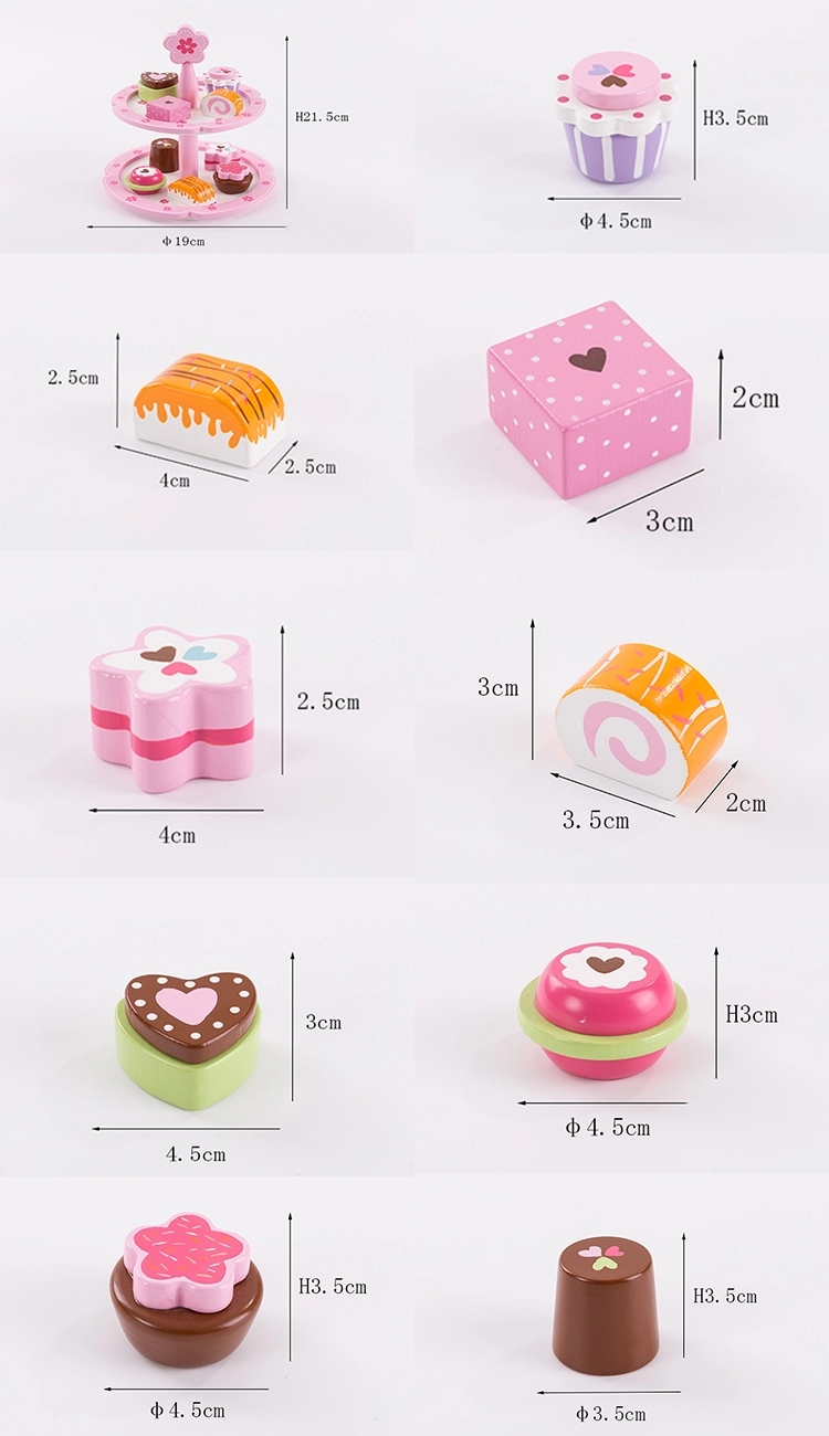 - Nine wooden cupcakes in assorted colors and sizes.