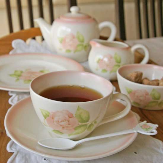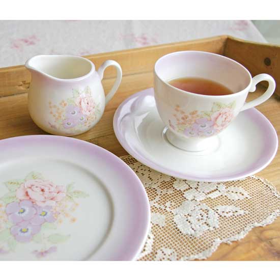 Presented here is a set of teaware with a graceful design. The tea set comes with a teapot, a cup, a saucer, a milk container and so on. This outlined tea set is great for home use.