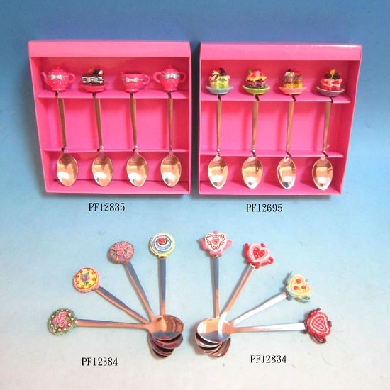 This is a set of tea spoons that includes four spoons packaged in an exquisite box. Each piece boasts a durable structure with a sophisticated and beautiful polyresin embellishment on the handle. This unique spoon set surely is a great gift choice for various kinds of occasions.