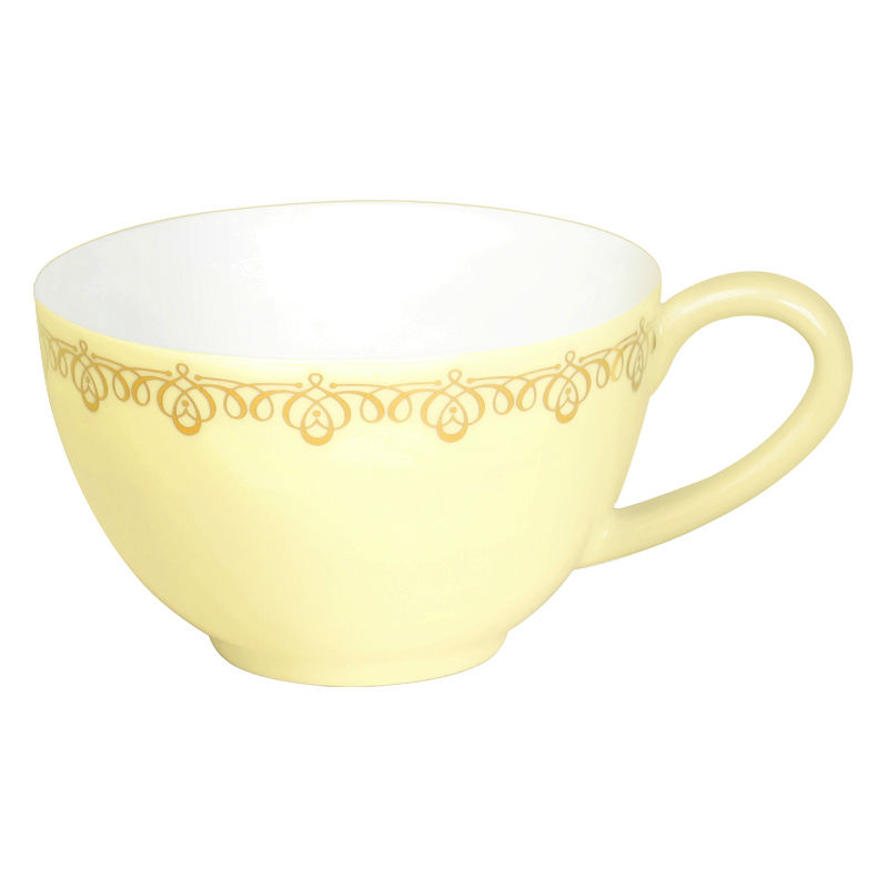 Serve tea with flair in this teacup. Crafted of fine bone China, this teacup realizes an exquisite appearance with a streamlined silhouette, creamy tone, and golden curling trims along the rim. You can perch this cup with the whole tea set to give an elegant touch to your breakfast table setting.