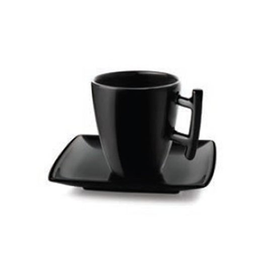This teacup and saucer set boasts simplistic charm. The refined finish in a plain black color is incredibly sophisticated. Use this excellent set to enjoy a comforting teatime.