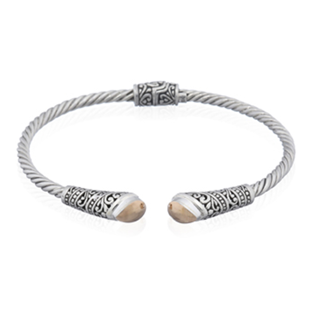 Tear Drop Gold Plated On Top Bohemian Silver Hinged Bangles