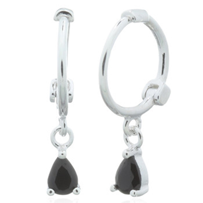 Teardrop CZ Black 925 Silver Huggie Hoop Earrings