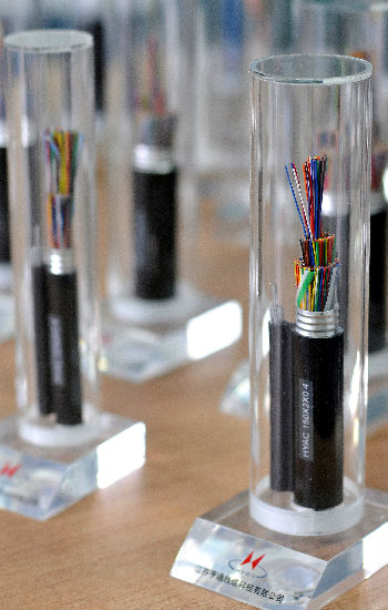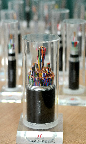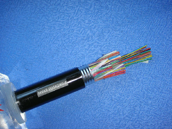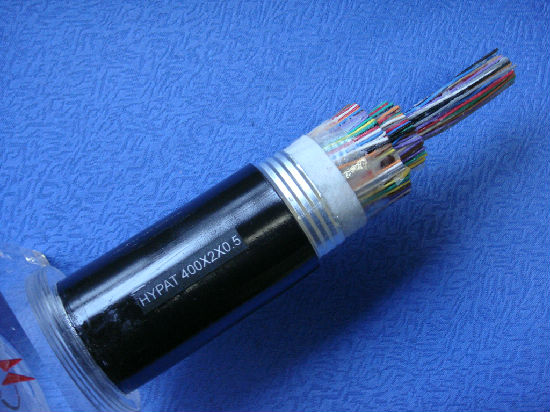 Several pairs of stranded wire are stranded unit by unit to become the cable with a certain pitch. It is cabled after different colored ribbons have been cabled unit by unit, and the non-hygroscopic polyester tape will be lapped out of the cable. An embossing aluminum tape is longitudinally covered out of the polyester tape and it is finally covered with external sheath.