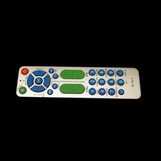 This pictured remote controller comes in a light gray hue. It is designed with assorted buttons for multifunctional performance. This multifunctional remote controller is compatible with a wide range of televisions.