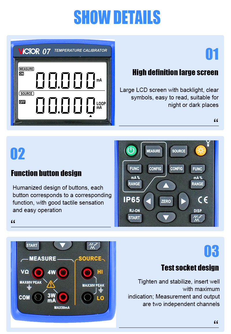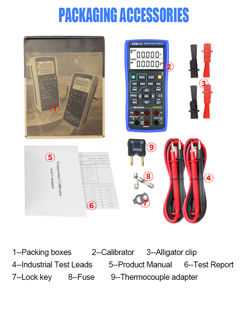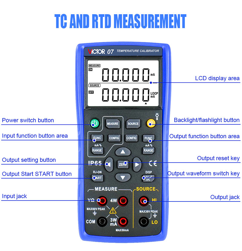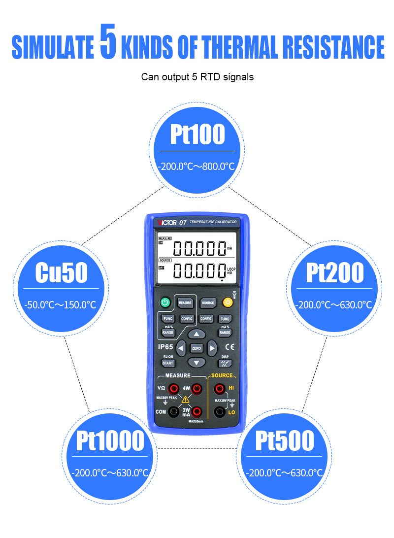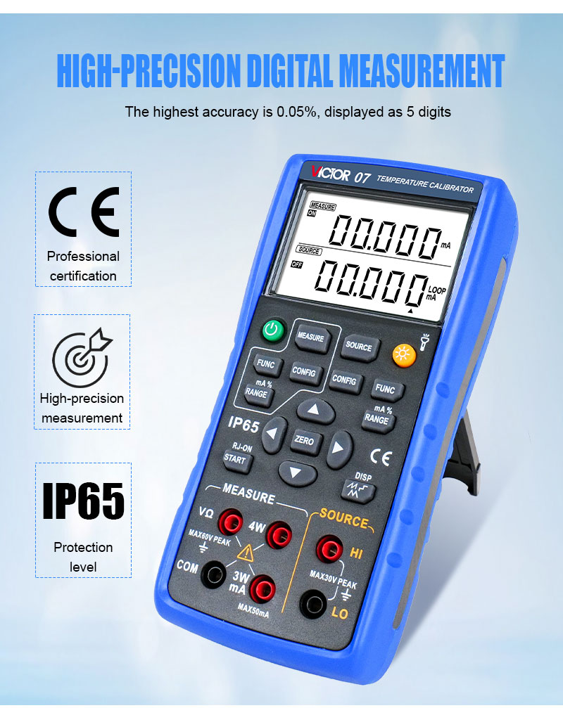 VICTOR 07 Temperature Calibrator with highest accuracy is 0.05% displayed as 5 digits