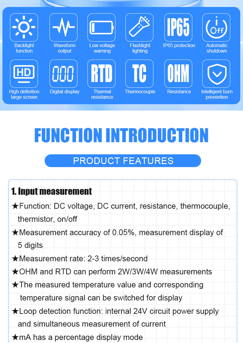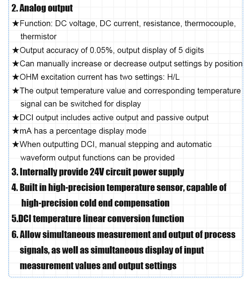 6.Allow simultaneous measurement and output of process signals, as well as simultaneous display of input measurement values and output settings
