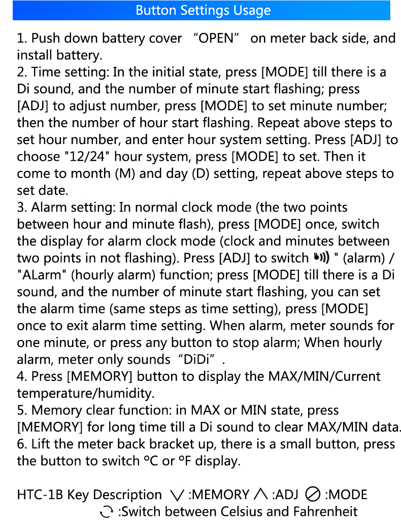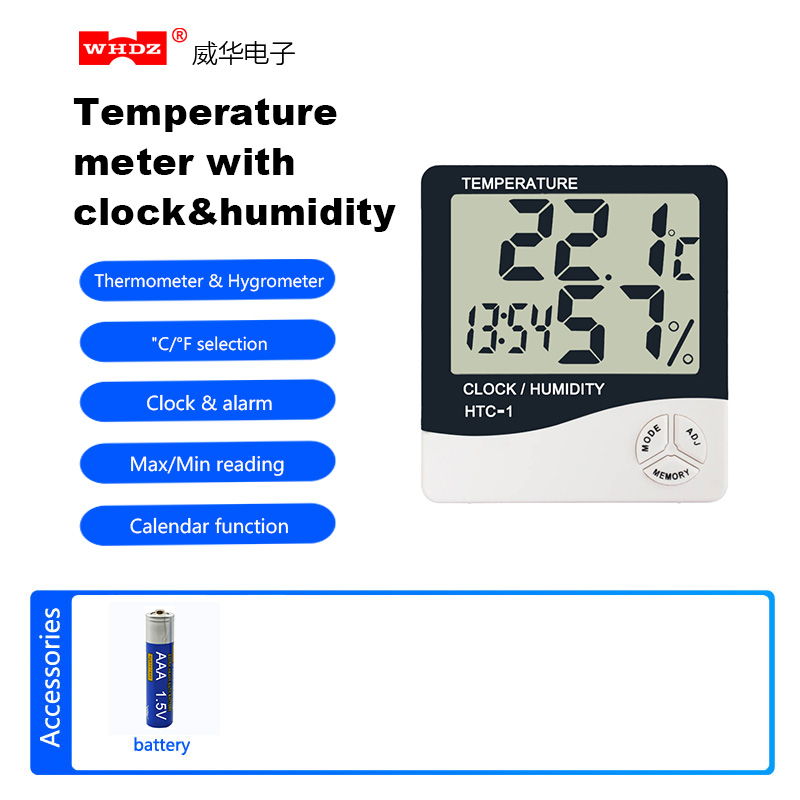 Temperature meter with clock & humidity HTC-1