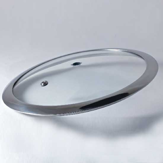 This is a round glass lid made of glass and stainless steel. The transparent flat tempered glass allows users to check on the food inside the saucepans, pots or jars. The glass lid is surely easy and convenient to clean.