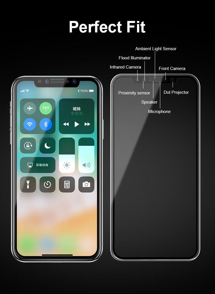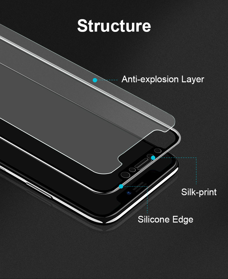 • 3D Silicone Soft Edge Full Cover Tempered Glass Screen Protector for iPhone X