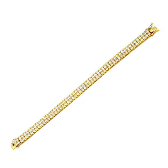 The tennis bracelet is finely crafted of 14K gold with brilliant cubic zirconia. The tennis bracelet creates a sparkling and dazzling effect. This piece of jewelry offers a highly polished finish.