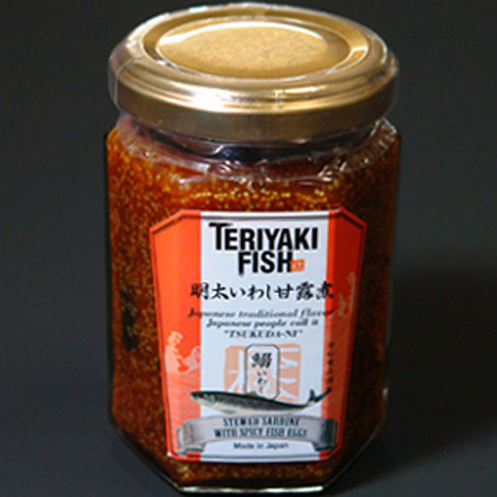 This is a bottle of teriyaki fishes with a spicy flavor. It is well packaged in an airtight can for an extended shelf life. This bottle of teriyaki fishes goes well with assorted dishes.