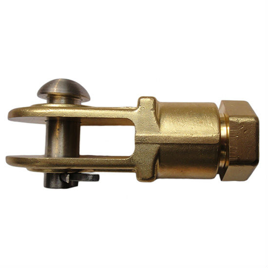 Highlighted here is a tensioning device in a metallic tone. The tensioning device is used for termination to adjust the tension of conductor. It is composed of pulley assembly for tensioning and ratchet wheel tensioning device.