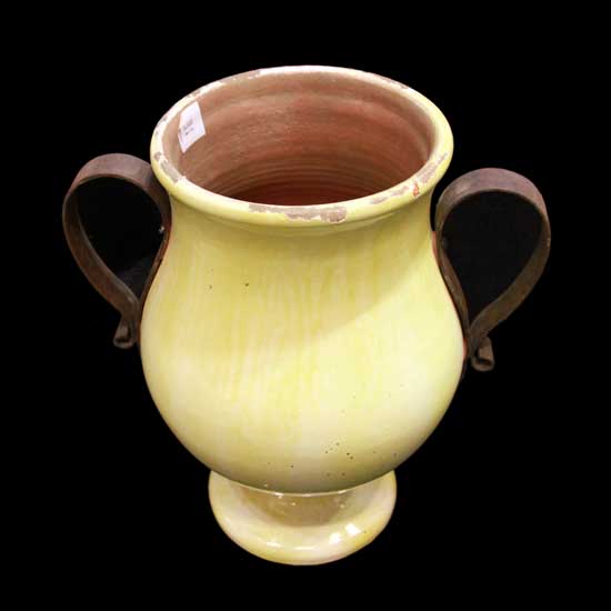 This sophisticated pot is crafted from terracotta clay. It also comes with two metal handles for easy carrying. This exceptional terracotta clay pot is of great decoration value.