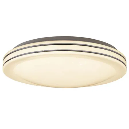 This is a round ceiling light. It has a light - colored lampshade with a few dark stripes on the upper part, giving it a simple and elegant appearance. When lit, it can emit soft light, suitable for creating a warm and comfortable lighting atmosphere in indoor spaces such as living rooms and bedrooms.