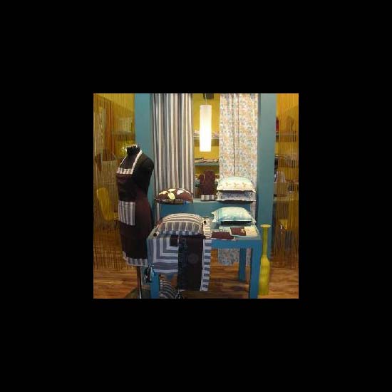 • This textile set includes cushions, kitchen gloves, aprons and curtains