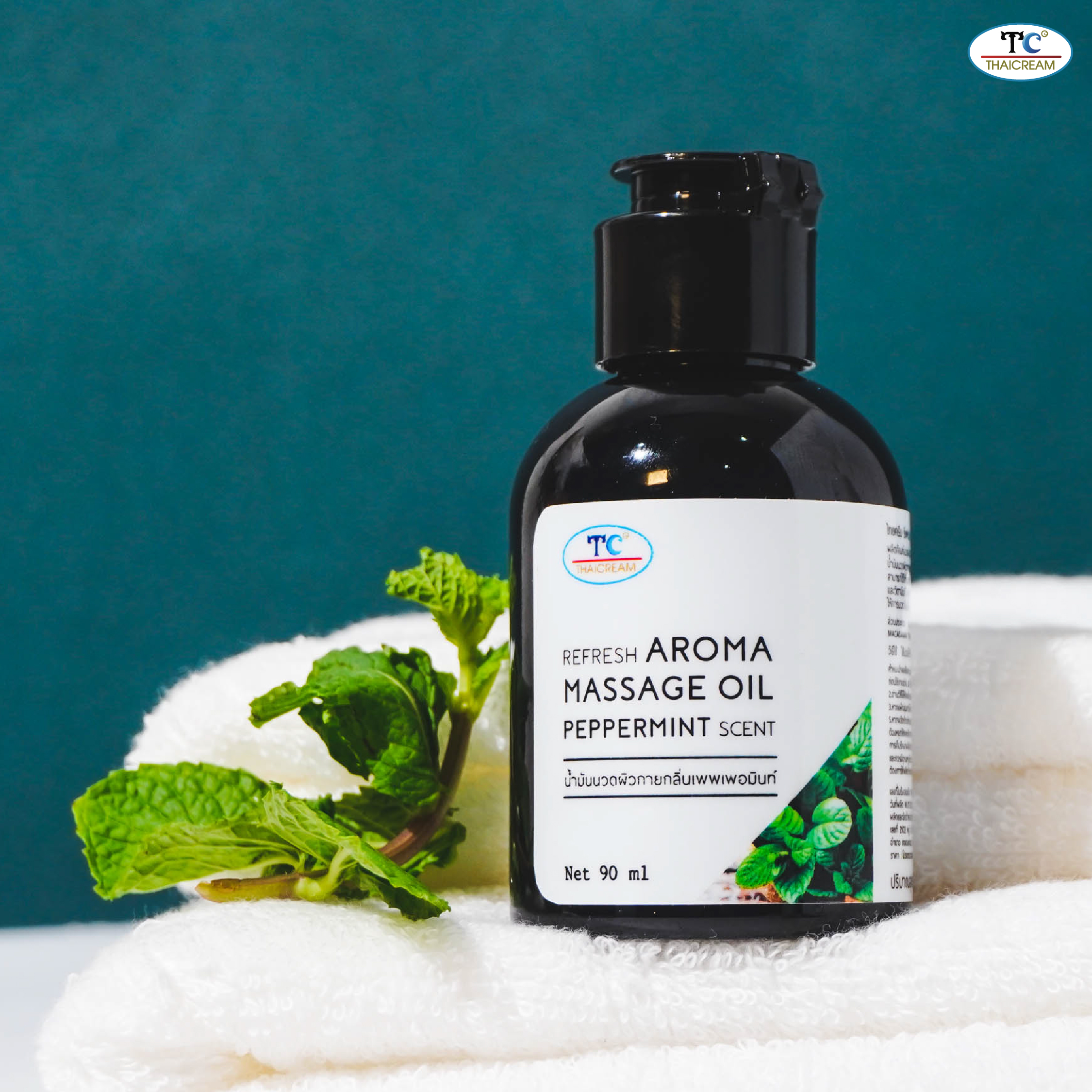 ThaiCream Refresh Aroma Massage Oil – Peppermint Scent is a spa-quality body massage oil with a lightweight, non-greasy texture that glides effortlessly across the skin. The refreshing peppermint aroma provides massage experience, suitable for both men and women. Idea for use after showering to help focus in moisture, this oil leaves the skin soft, nourished, and revitalized. An excellent choice for individuals with dry skin who enjoy an invigorating yet soothing fragrance.