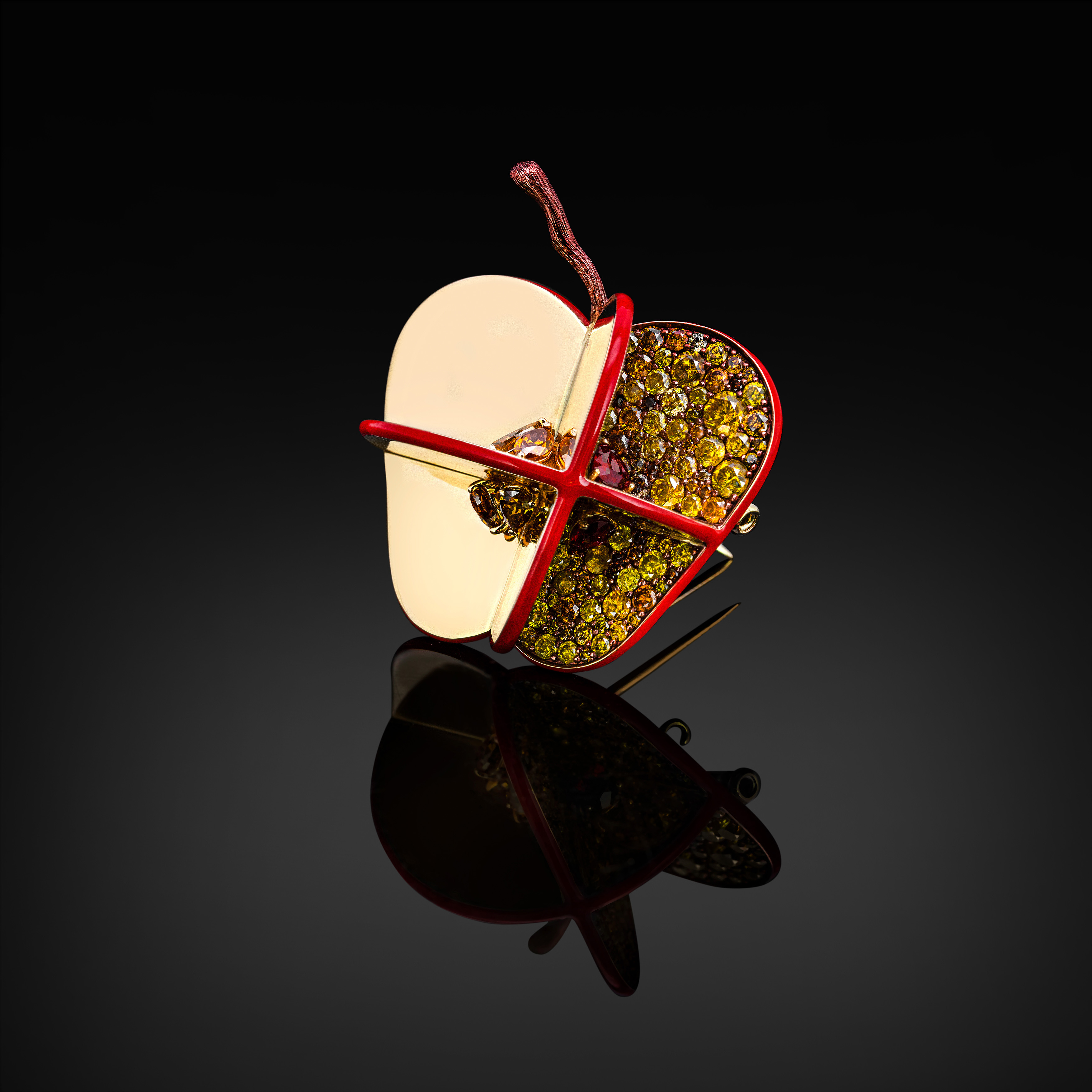 18K Yellow Gold, Color Diamond, Ruby