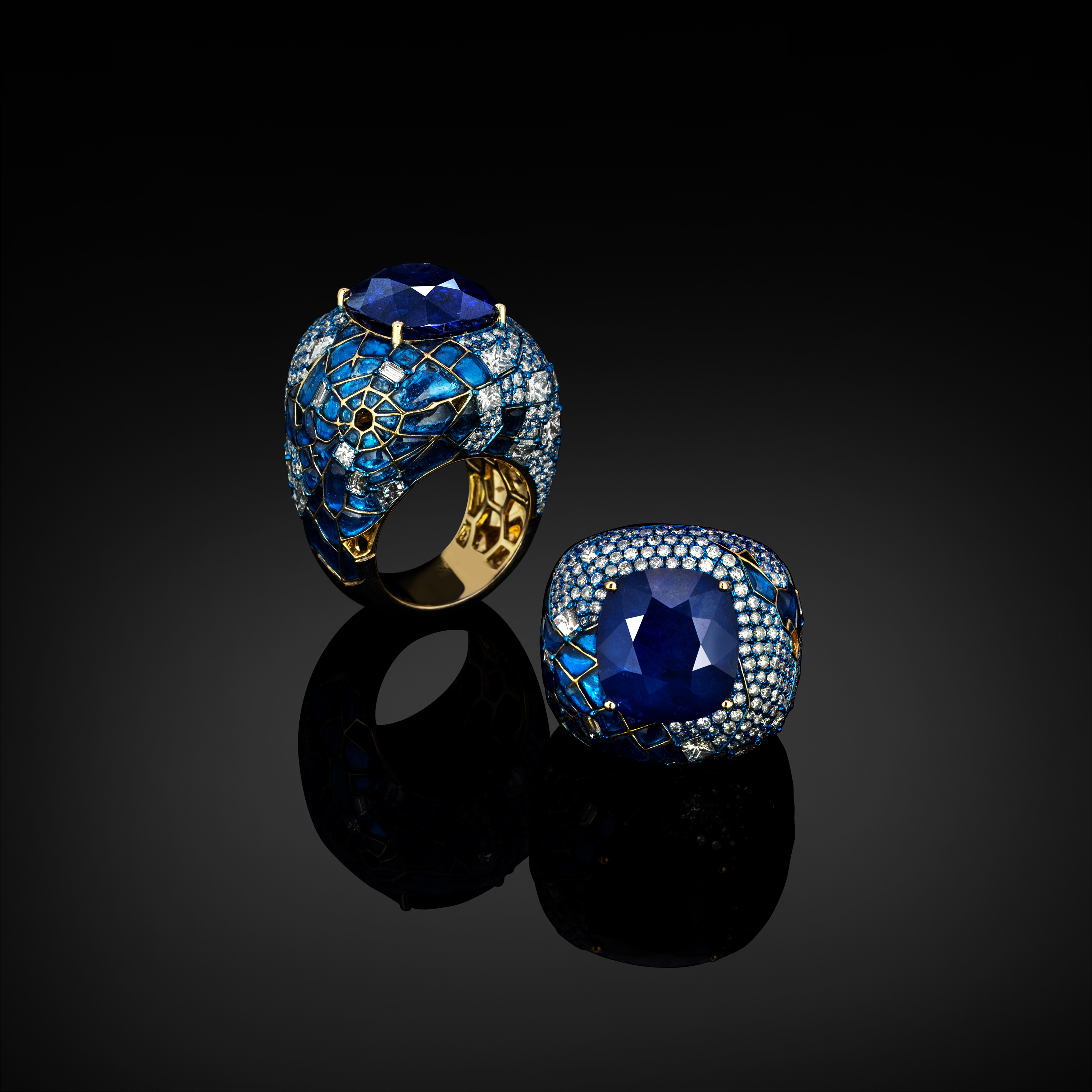 18K Yellow Gold, White Topaz, Blue Sapphire, Diamond