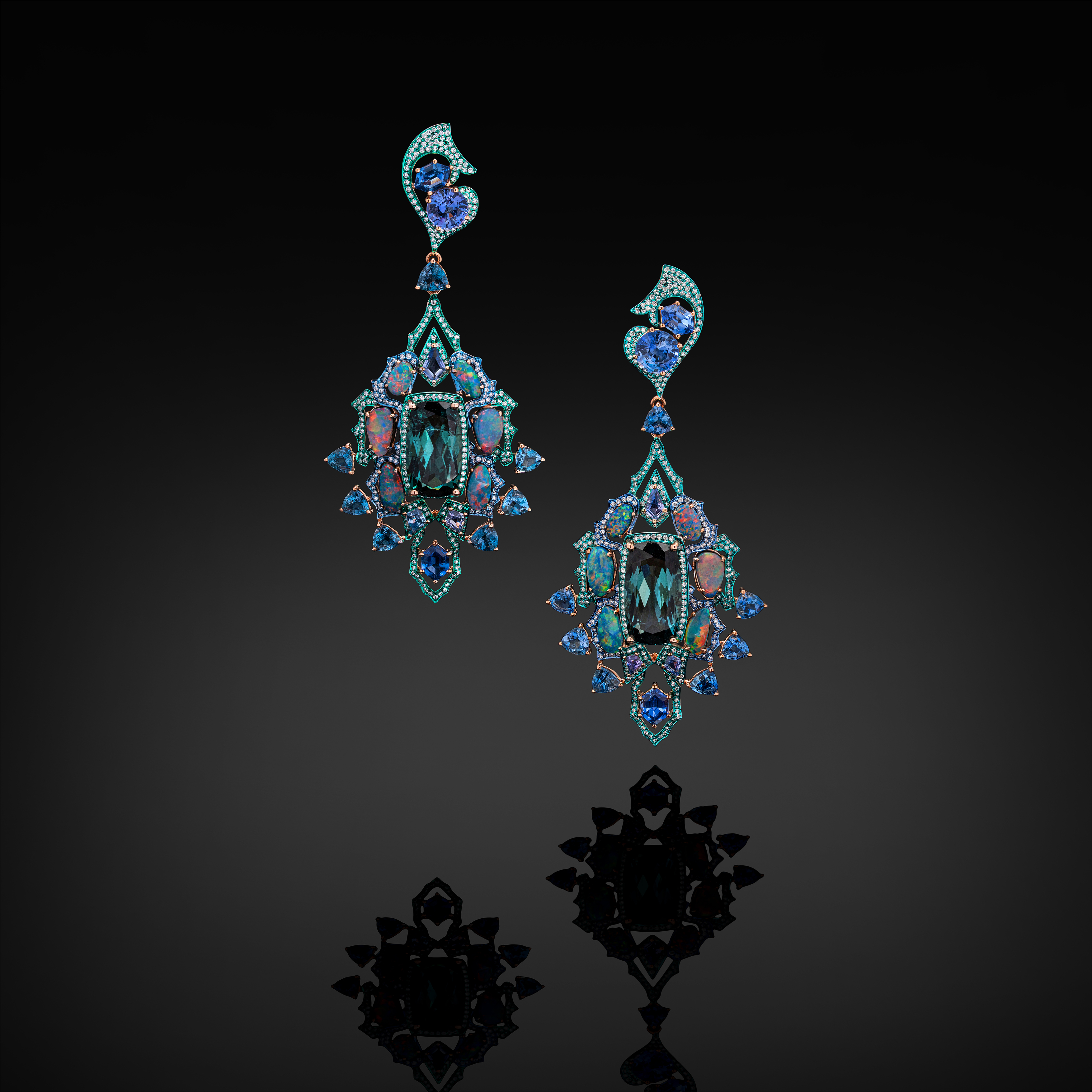 18K Rose Gold, White Diamond, Sapphire, Aquamarine, Opal, Blue Tourmaline