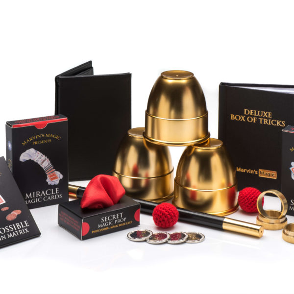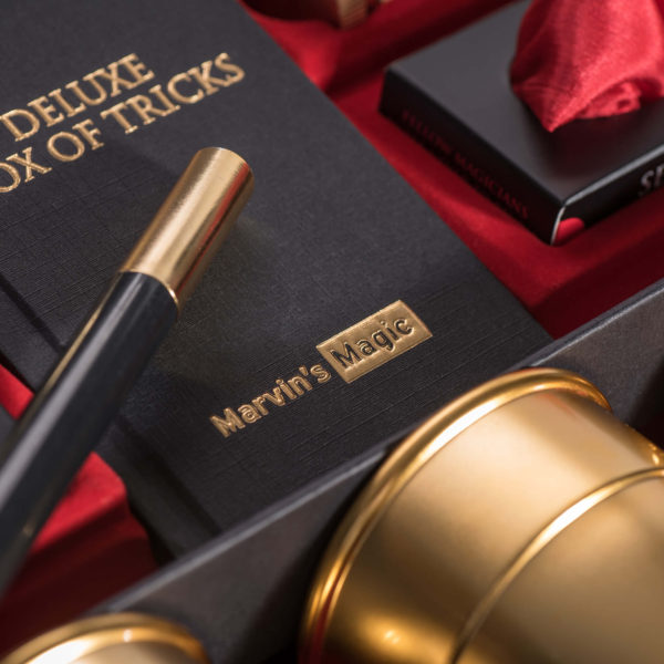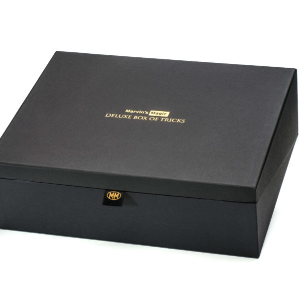- The Deluxe Box of Tricks is a stunning collection of magic, and comes beautifully presented in a unique, double-layered black-and-gold box with red flock-fleeced interior to protect and display each prop.Includes: